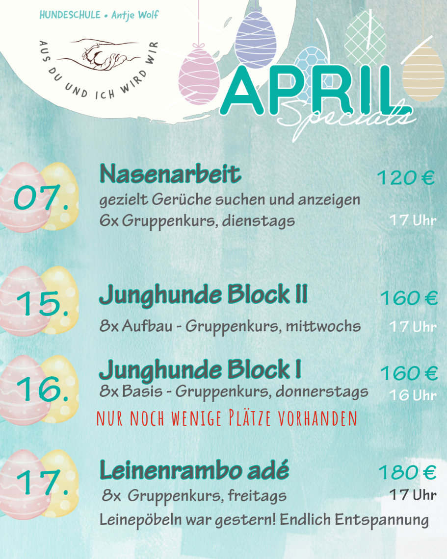 ab 15.04. Junghunde Block II, 17 Uhr